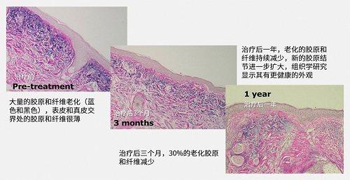 化促進創(chuàng)傷愈合的級聯(lián),導致膠元的新生和日光性彈性組織變性的減輕。